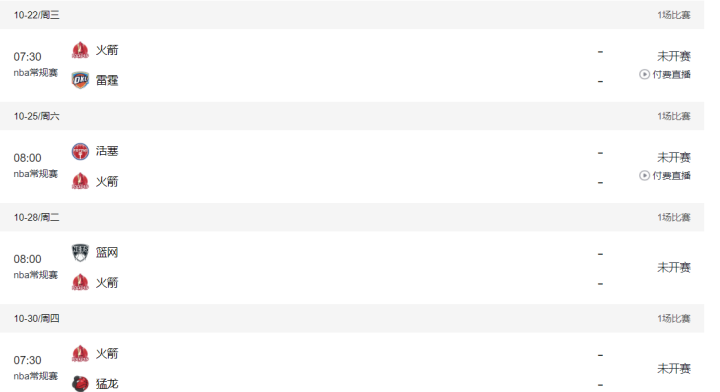 火箭在10月份的对手整体不是很强,除了雷霆之外,活塞、篮网、猛龙都是弱旅,休斯顿球队有望取得一波连胜开启新赛季!